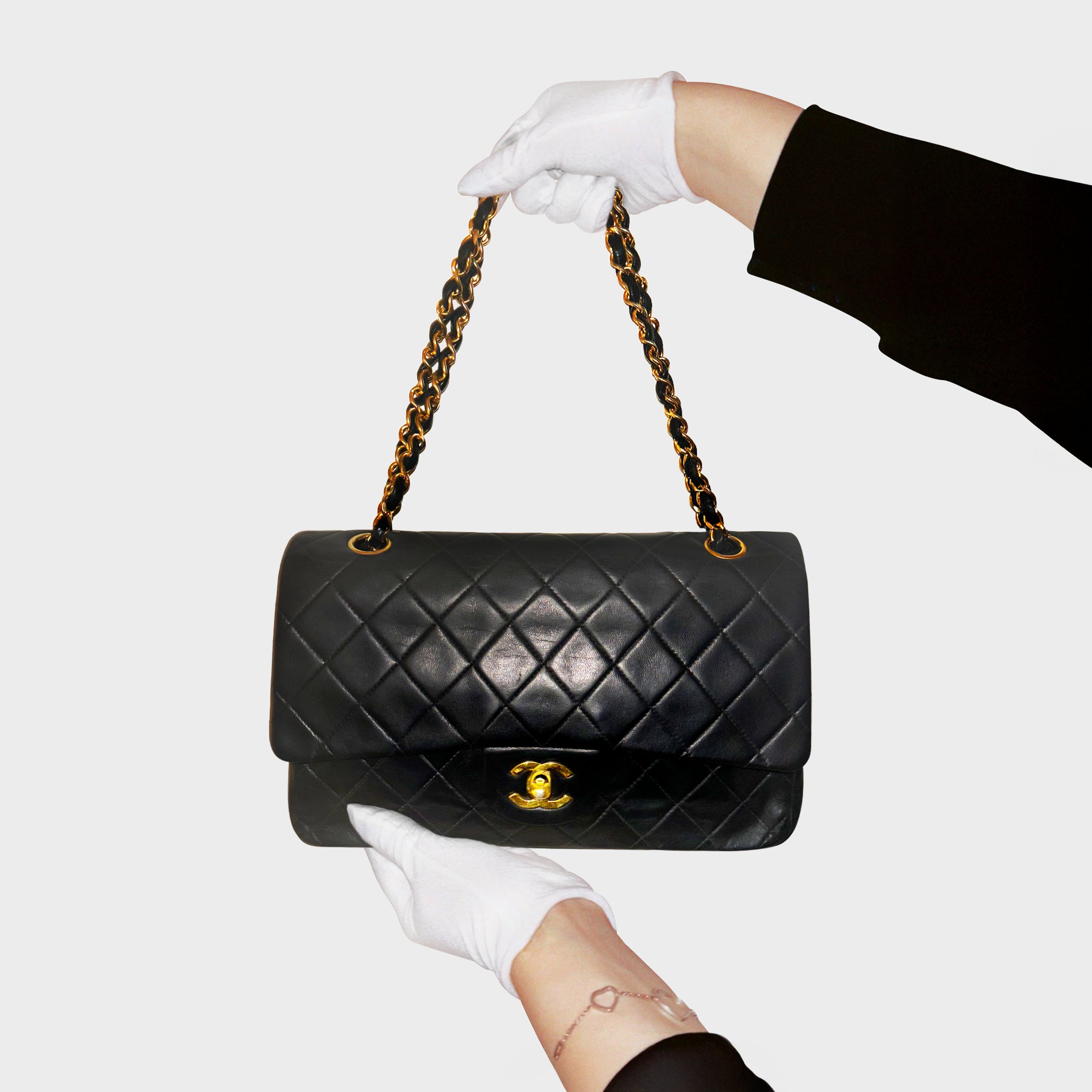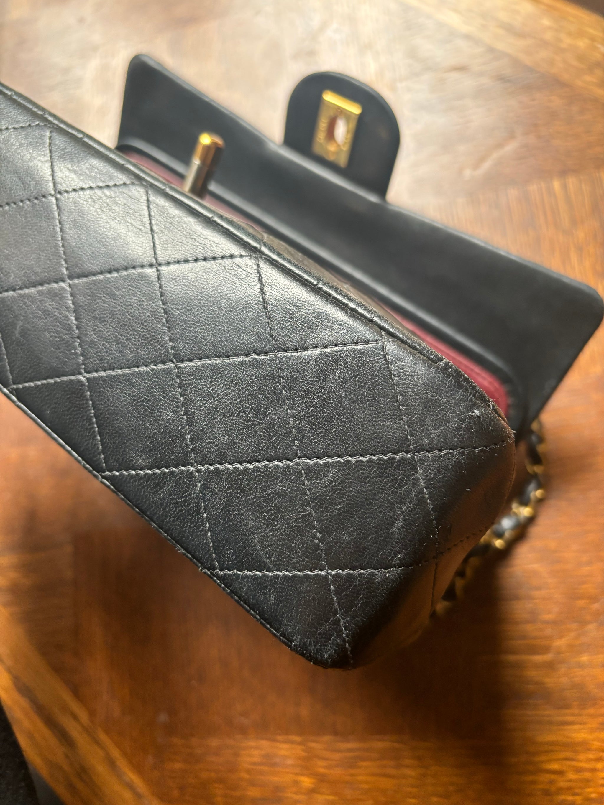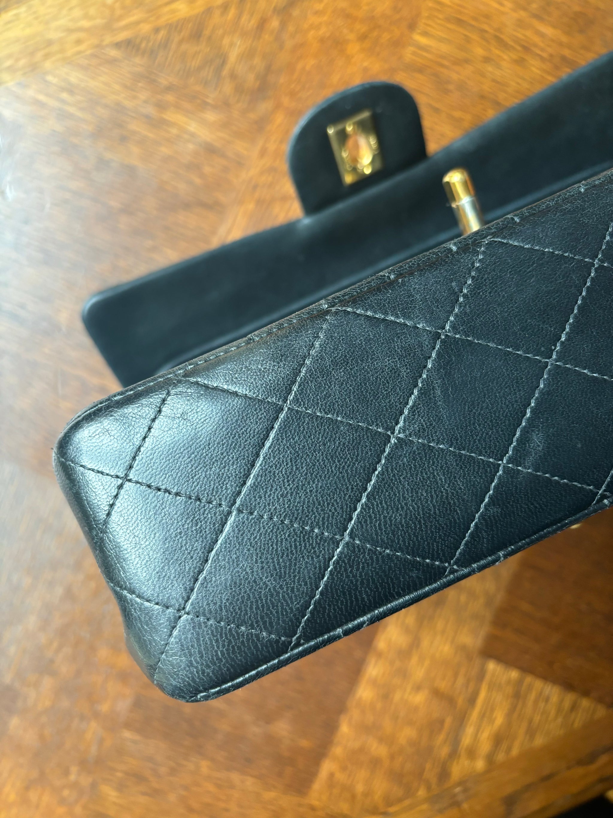 A dream vintage piece: Chanel Timeless classic double flap in black with gold hardware.