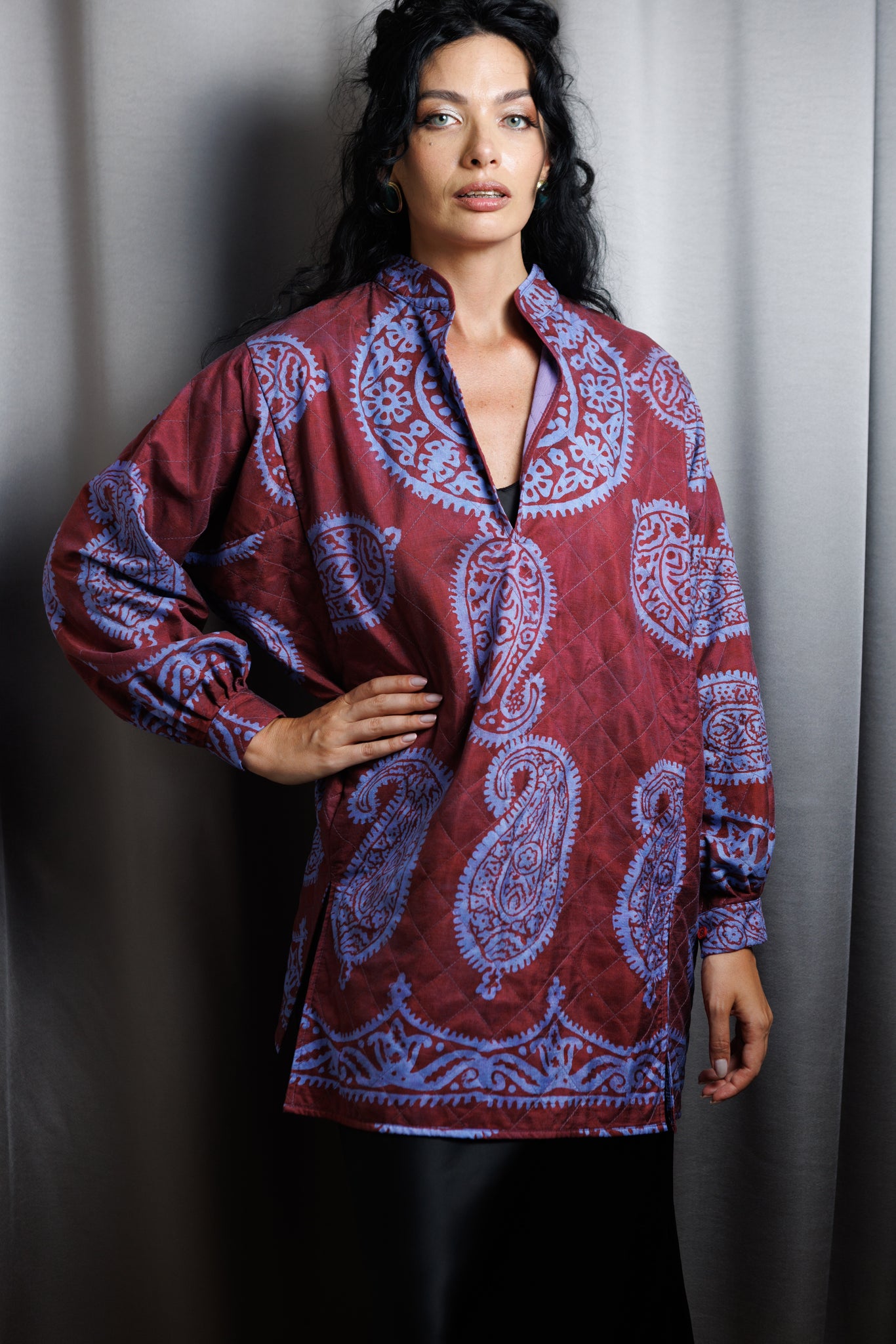 The jewel in the crown of the NATAVAN collection: SULTANAN buttonless shirts made from cotton and adorned with hand-stamped elements on the fabric.