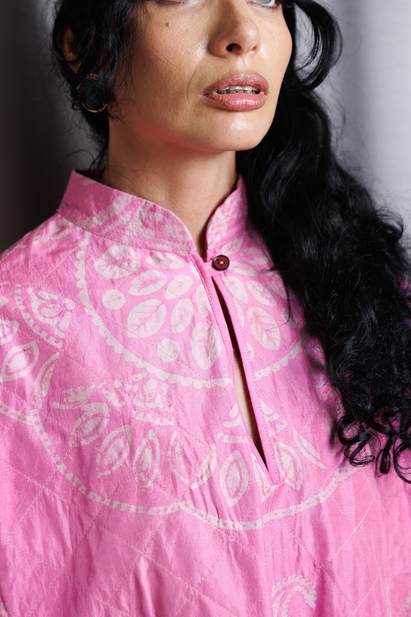 The jewel in the crown of the NATAVAN collection: SULTANAN buttonless shirts made from cotton and adorned with hand-stamped elements on the fabric.
